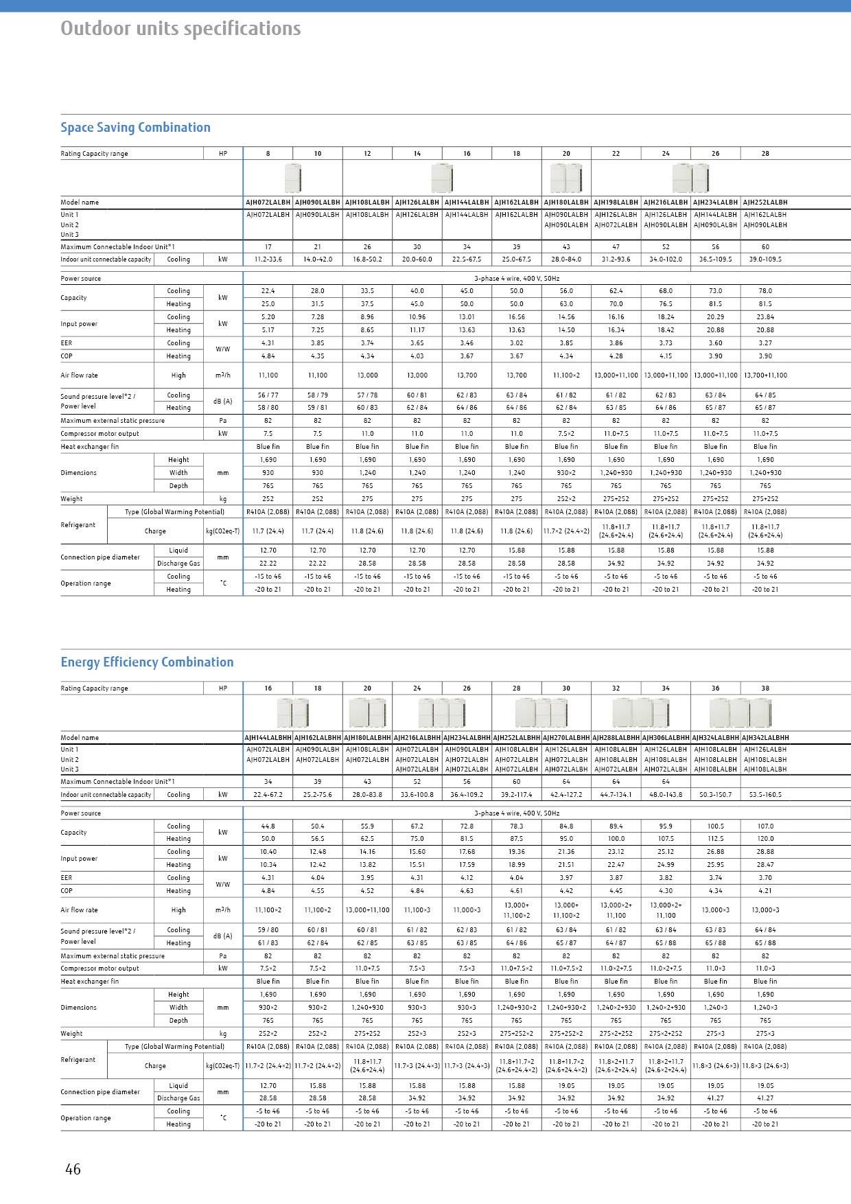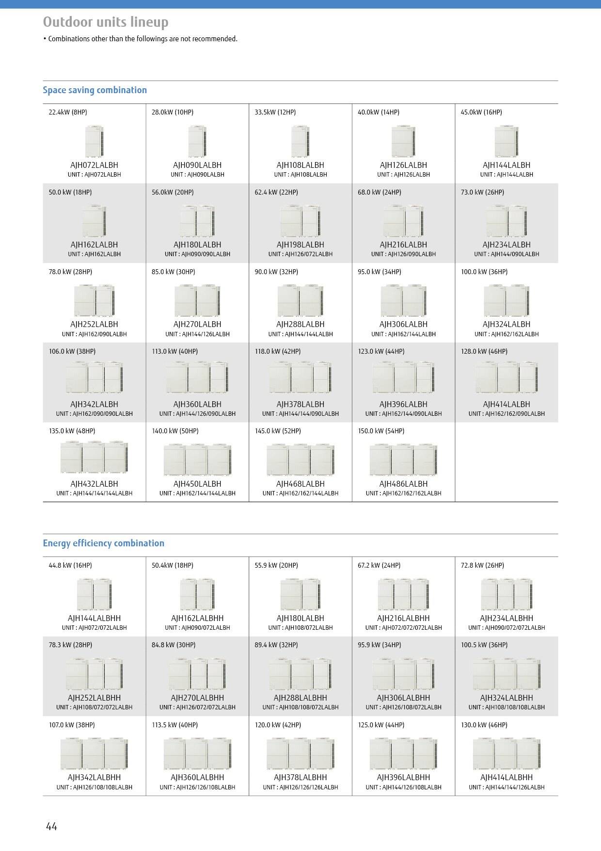 Outdoor units combinations